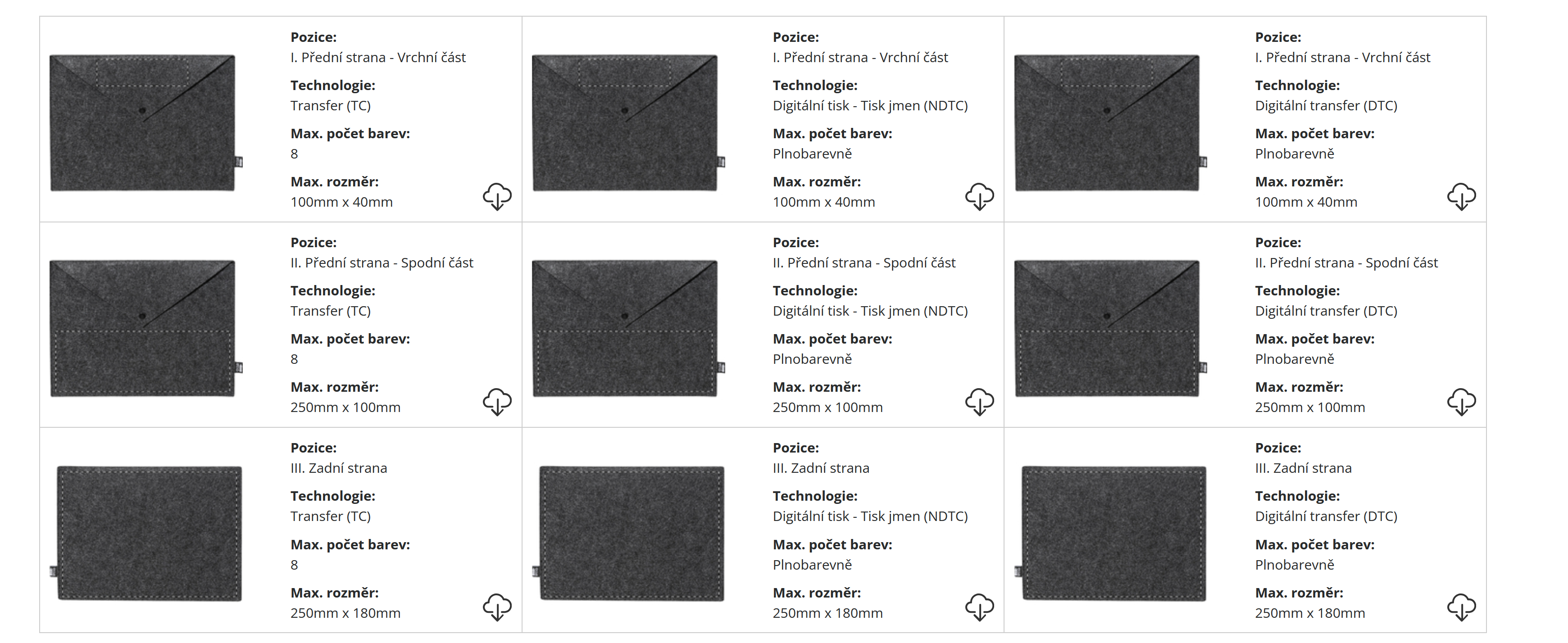 | Velikost potisku: | Dle dohody, umístění a zvolené technologie tisku |