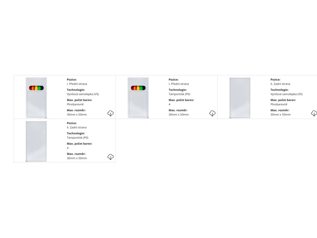 | Kategorie: | TUŽKY & PASTELKYREKLAMNÍ PŘEDMĚTY s potiskem i bez potiskuReklamní předměty s potiskem i bez potiskuZobrazit další kategorieDřevěné barevné pastelky |
