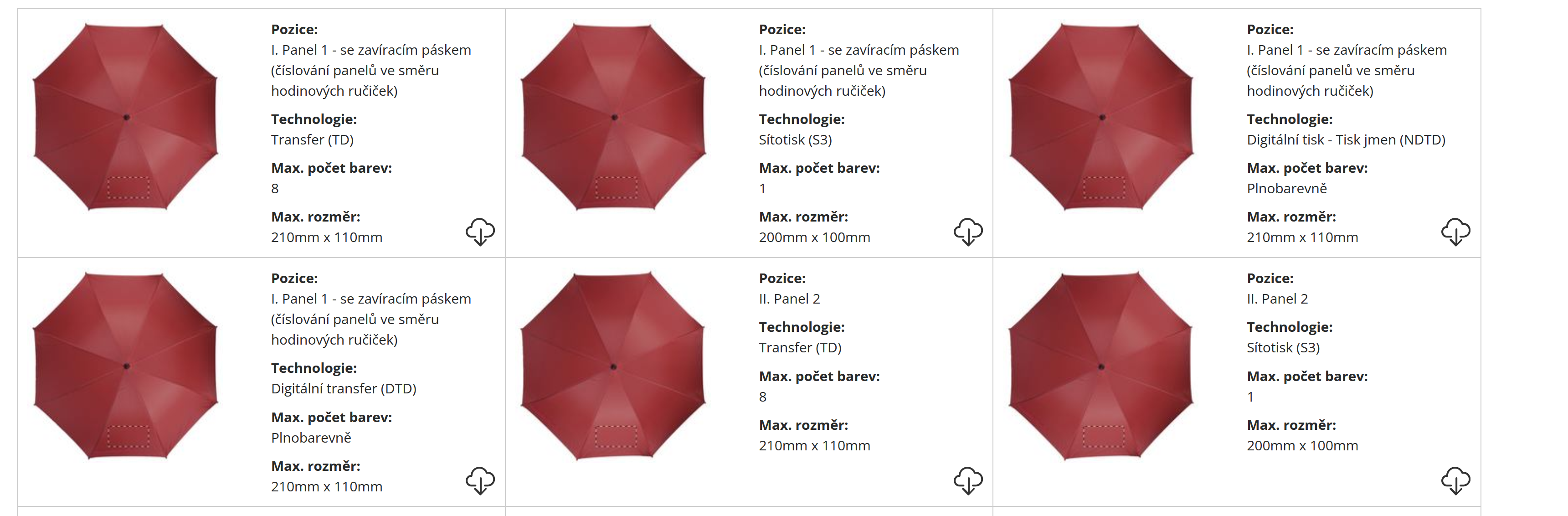 | Deštníky velikost: | 105x89 cm |