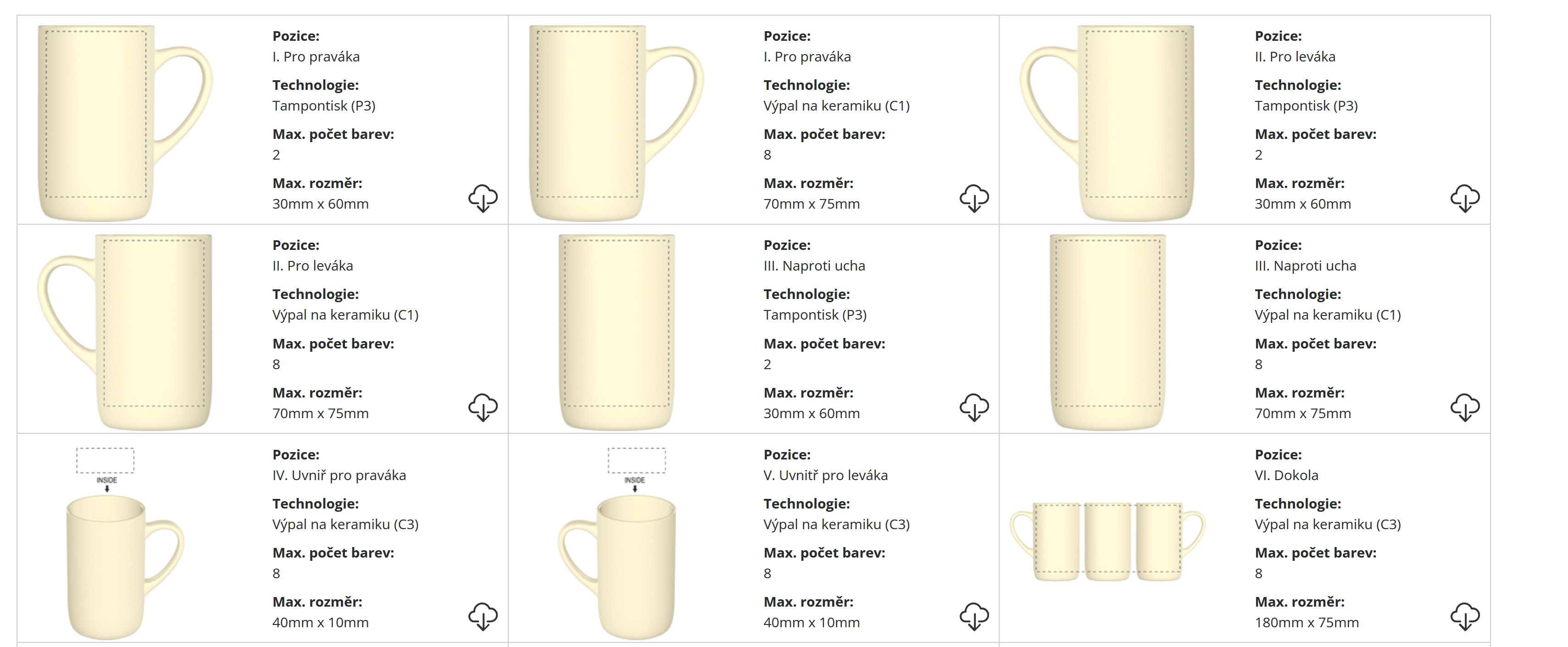 | ? Technologie potisku: | Výpal na keramiku/Rotační sítotisk/ Tampontisk |