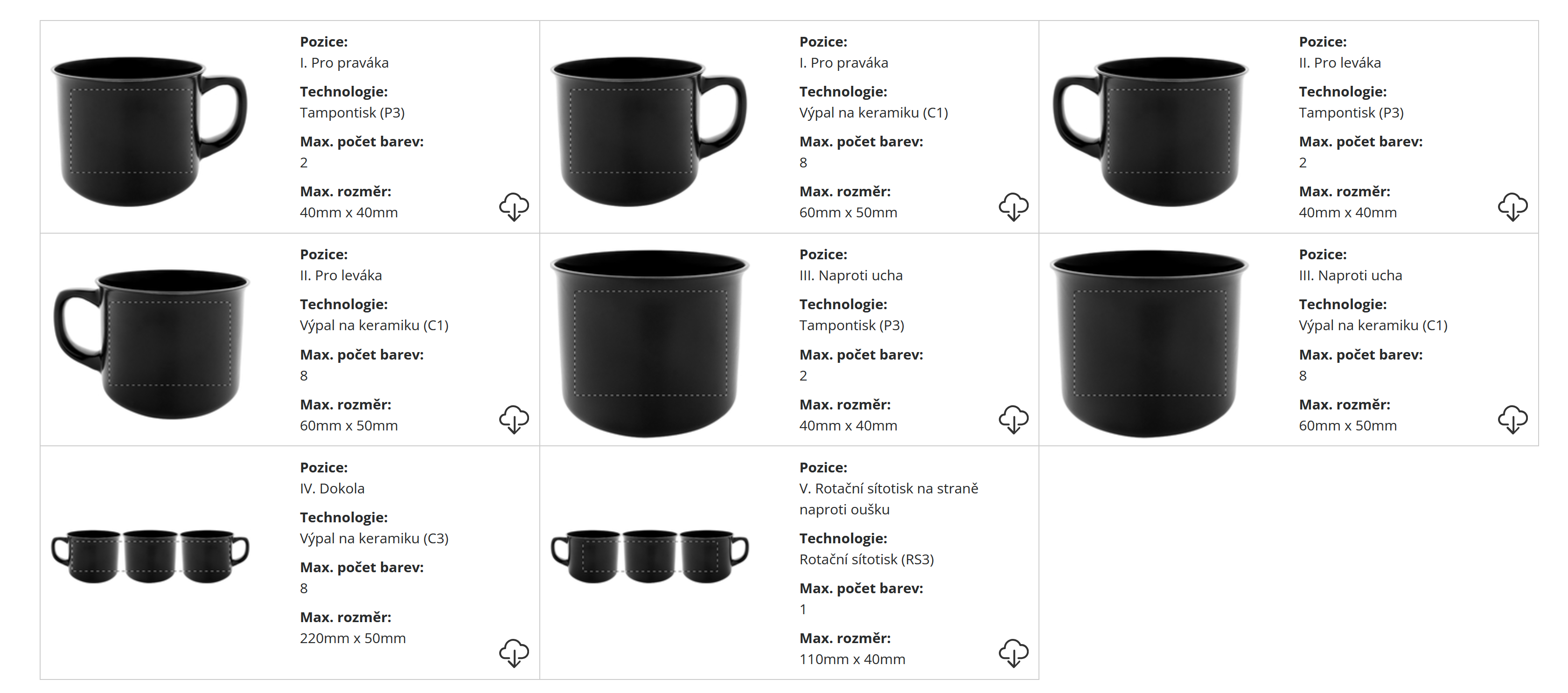 | ? Technologie potisku: | Výpal na keramiku/ Rotační sítotisk/ Tampontisk |