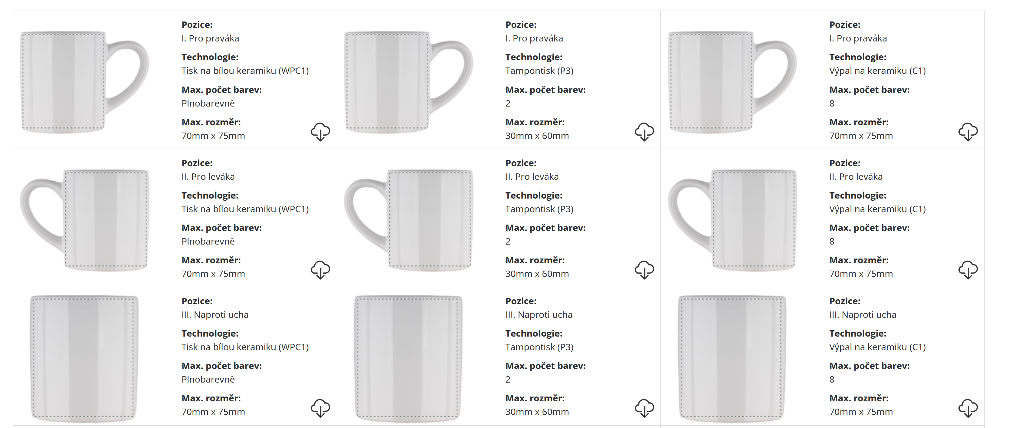 | ? Technologie potisku: | Tampontisk na keramiku/Tisk na bílou keramiku/Výpal na keramiku |