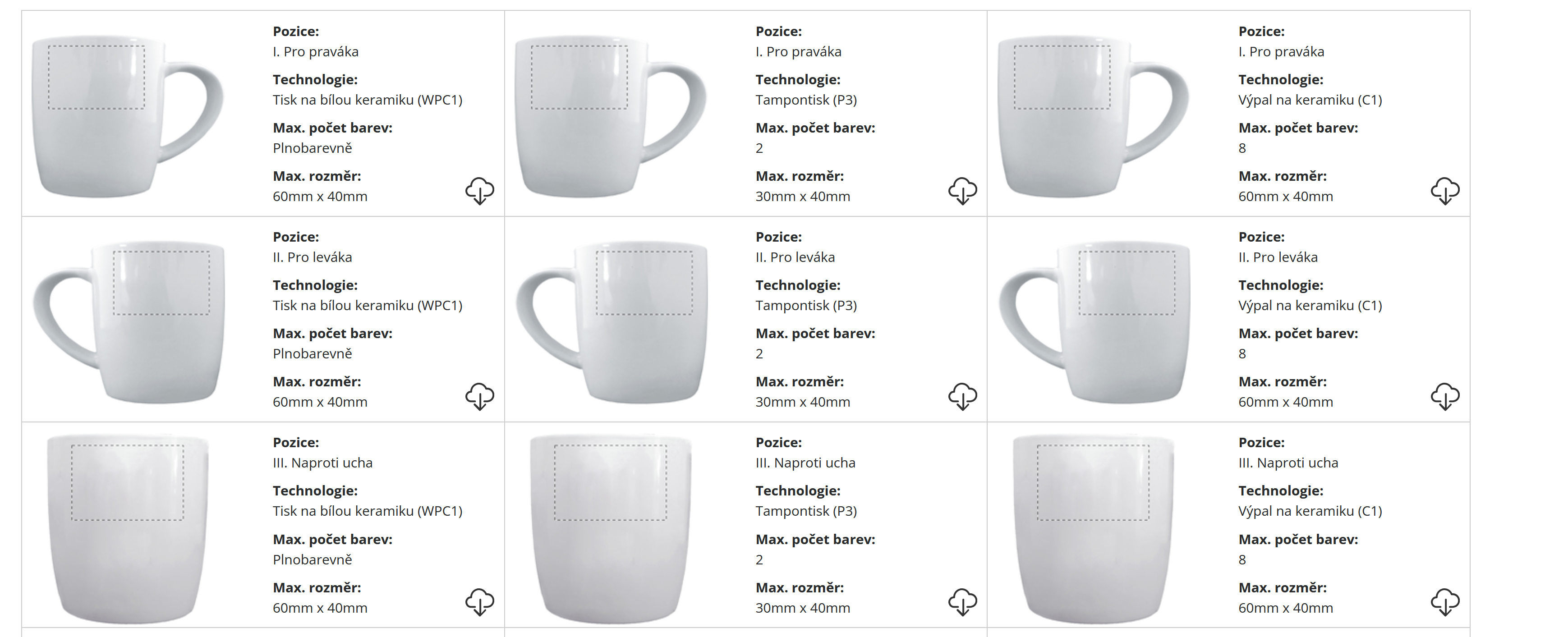 | ? Technologie potisku: | Tisk na bílou keramiku/Tampotisk na keramiku/Výpal na keramiku |