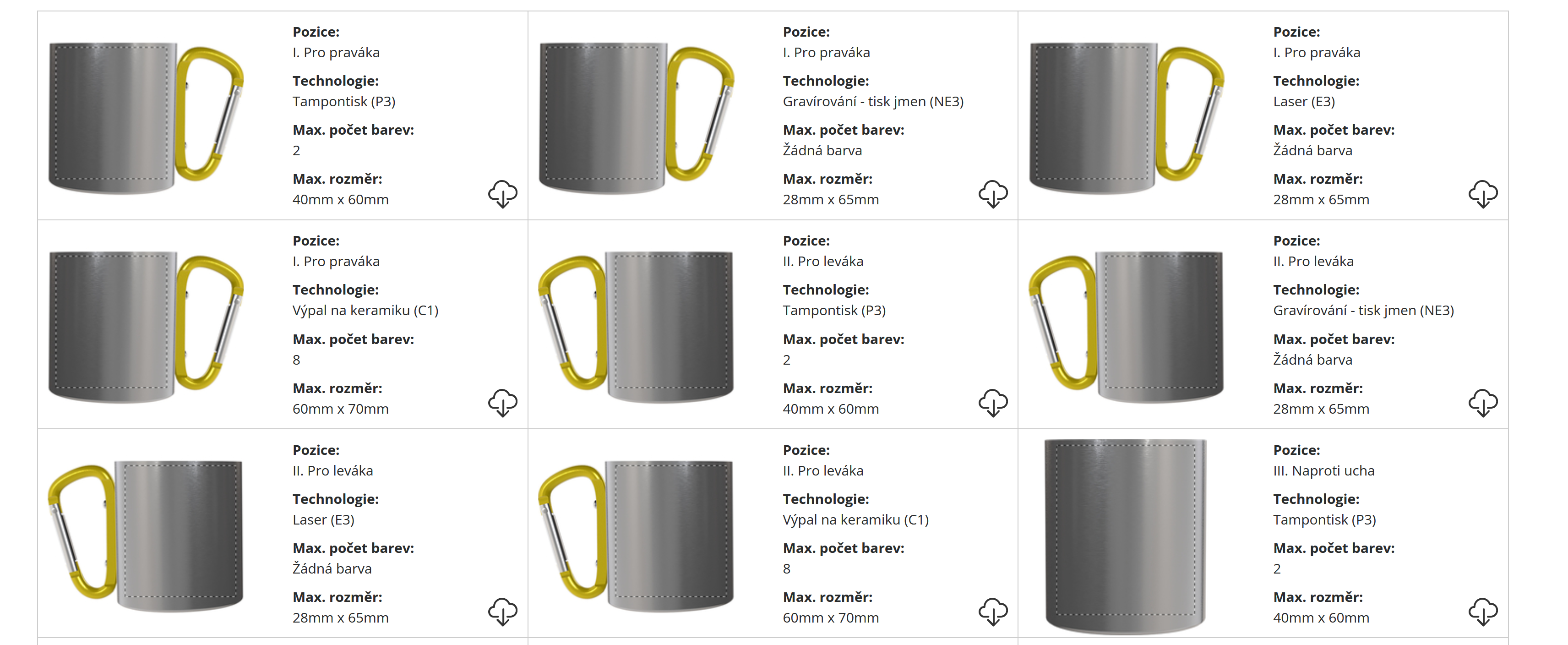 | ? Technologie potisku: | Laser/Barevný laser/Výpal/ Tampontis |