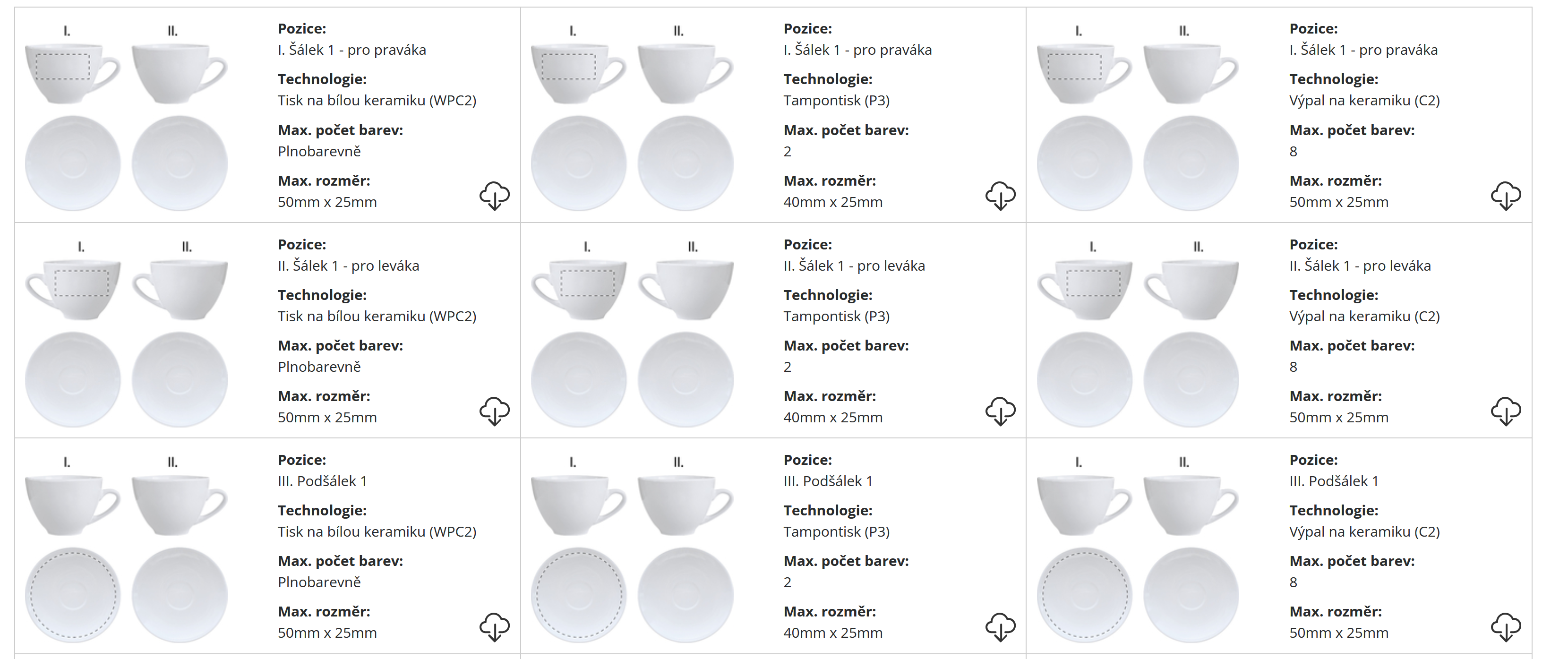 | ? Technologie potisku: | Tisk na bílou keramiku/Tampotisk na keramiku/Výpal na keramiku |