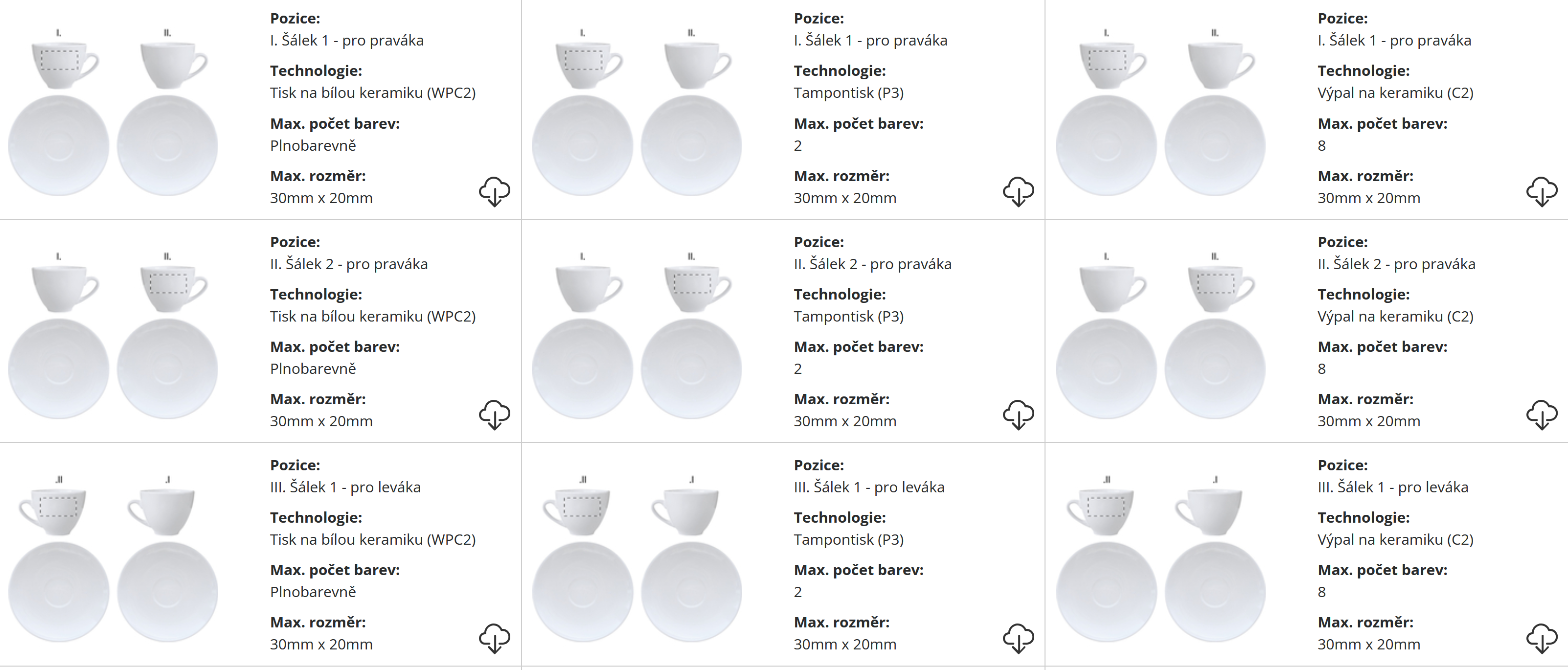| ? Technologie potisku: | Tisk na bílou keramiku/Tampotisk na keramiku/Výpal na keramiku |