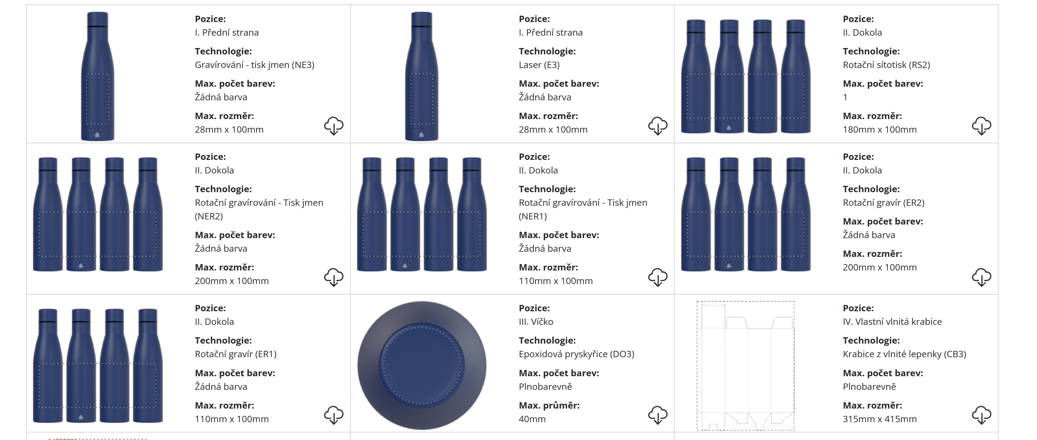 Láhve, hrnky lze potisknout jednobarevným, ale plnobarevným potiskem.