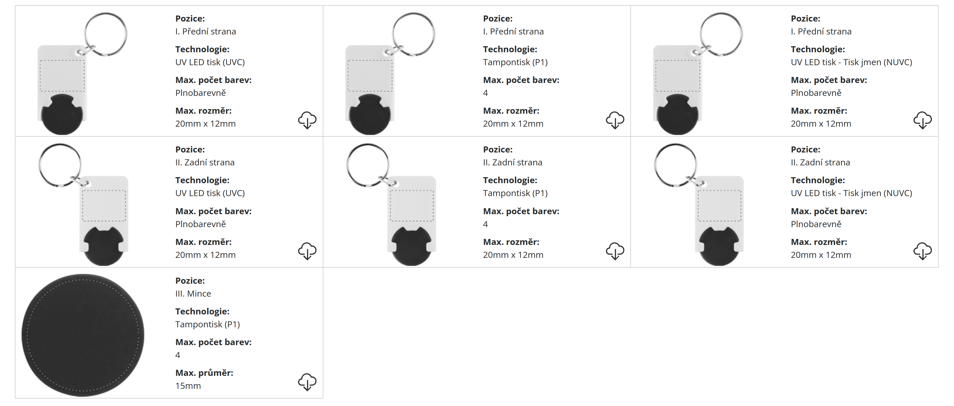 Klíčenky a plastové žetony lze potiskovat tampon tiskem.