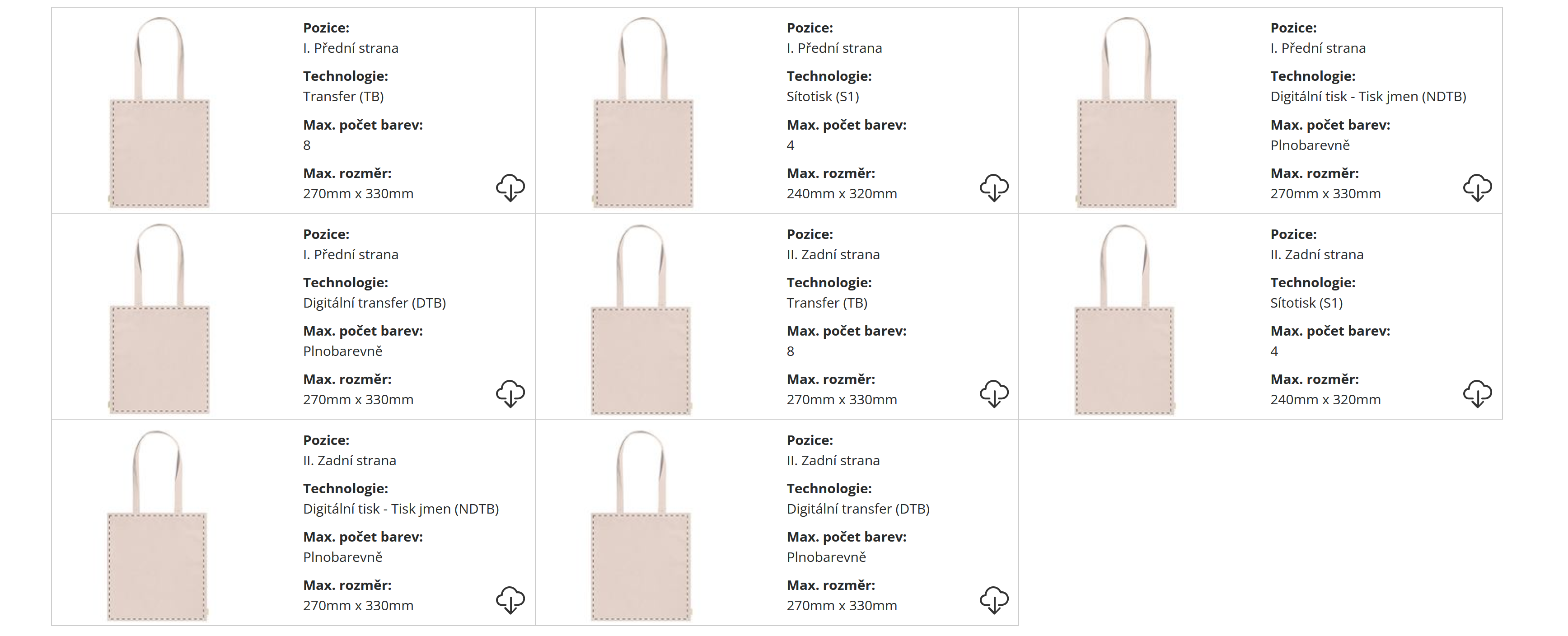 | Velikost potisku: | Dle dohody a zvolené technologie tisku |