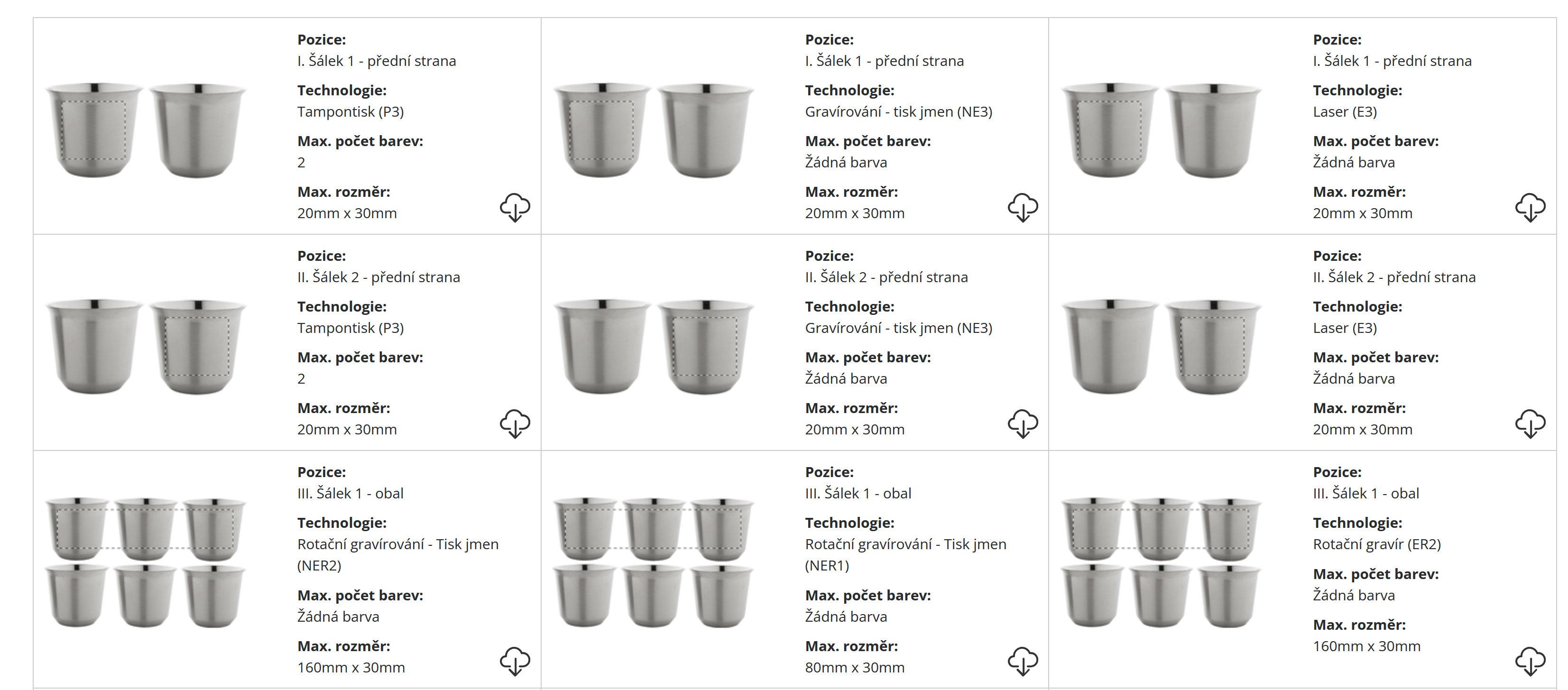 | Technologie potisku: | Tampontisk/ Laser/ Rotační gravír |