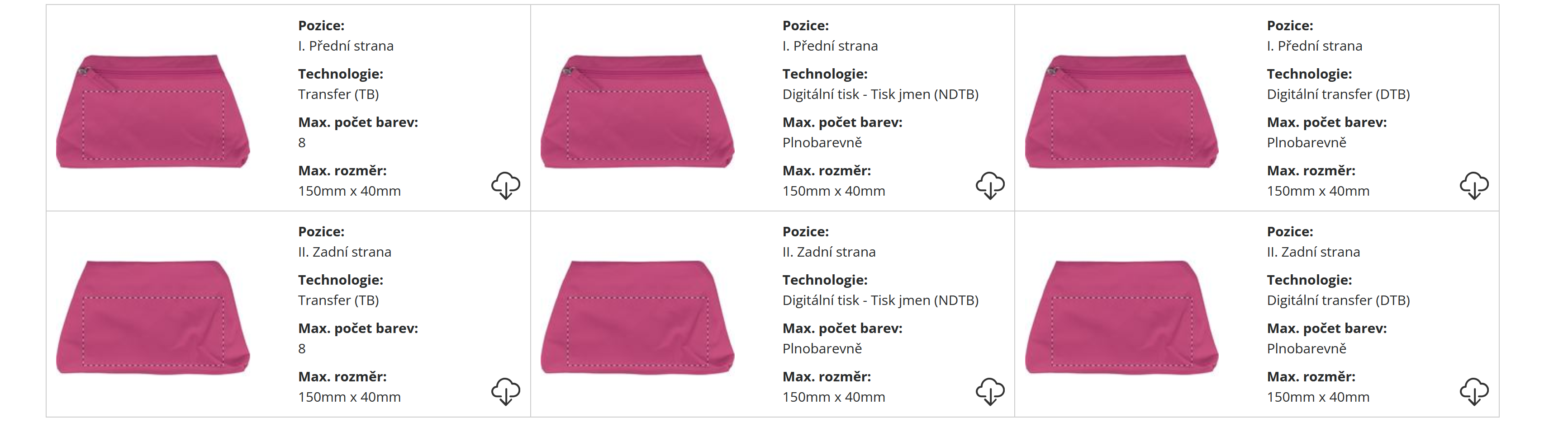 | Velikost potisku: | Dle dohody, umístění a zvolené technologie tisku |