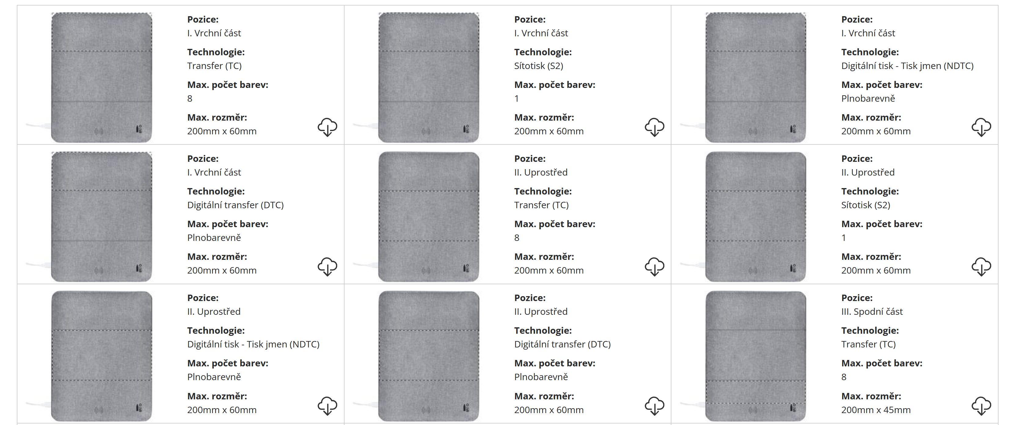 | Velikost potisku: | Dle dohody a zvolené technologie tisku |