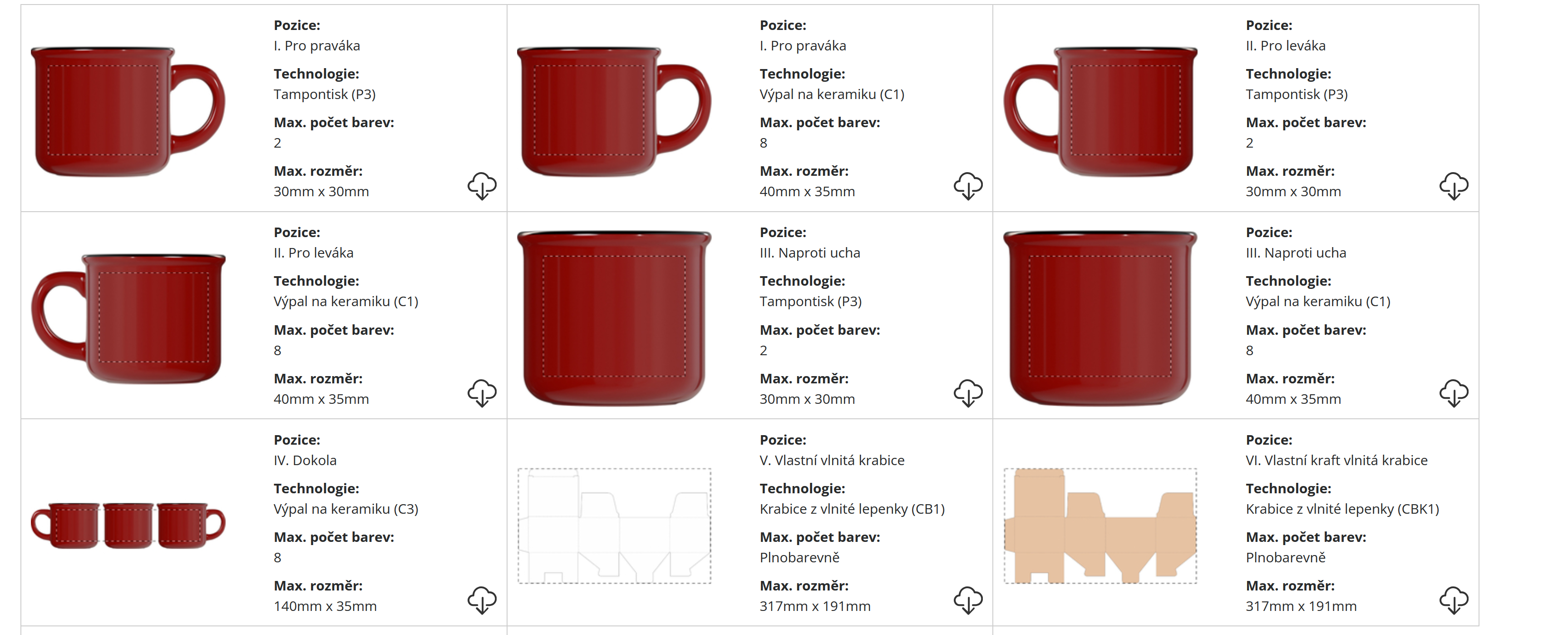 | ? Technologie potisku: | Tisk na bílou keramiku/Výpal na keramiku/Tampontisk |