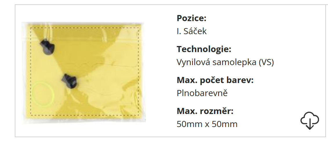 | ? Technologie potisku: | Vynilová samolepka na sáček |