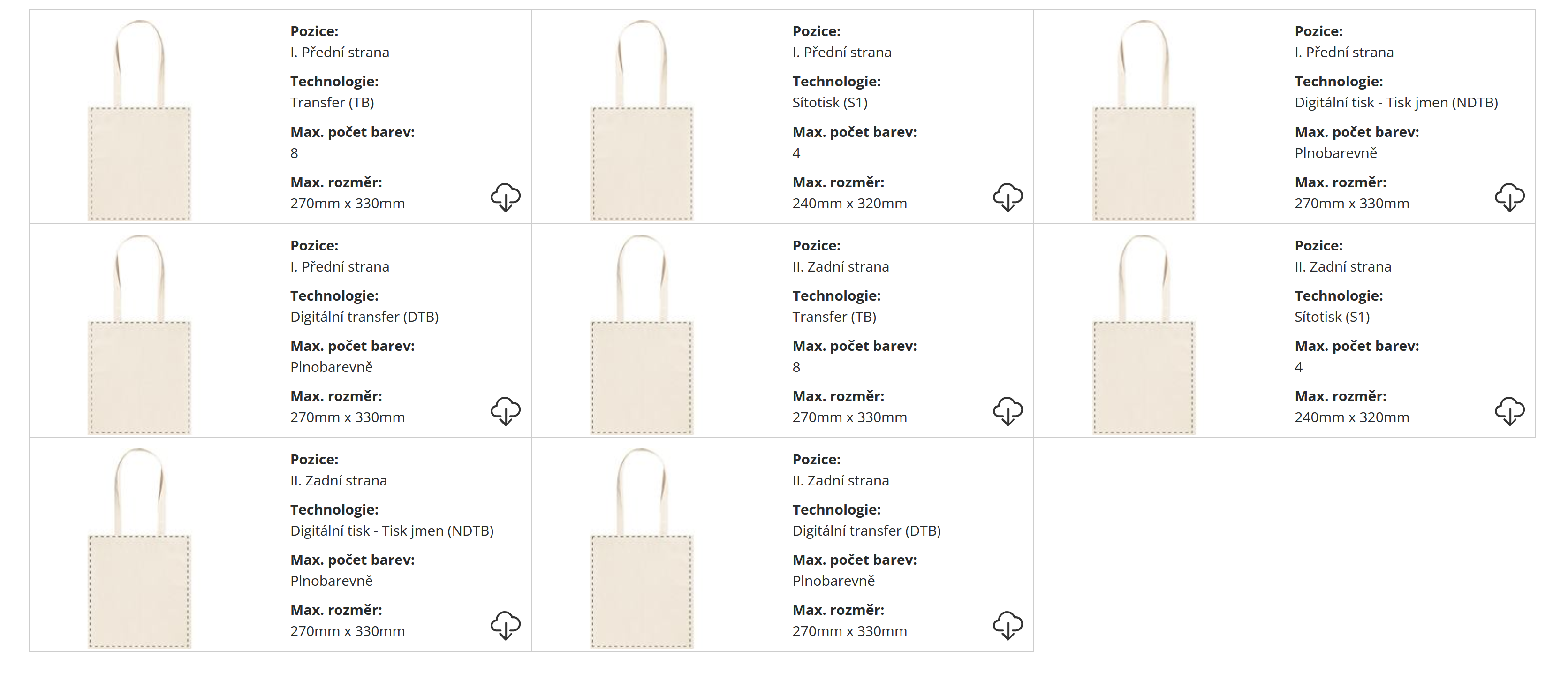 | Velikost potisku: | Dle dohody a zvolené technologie tisku |