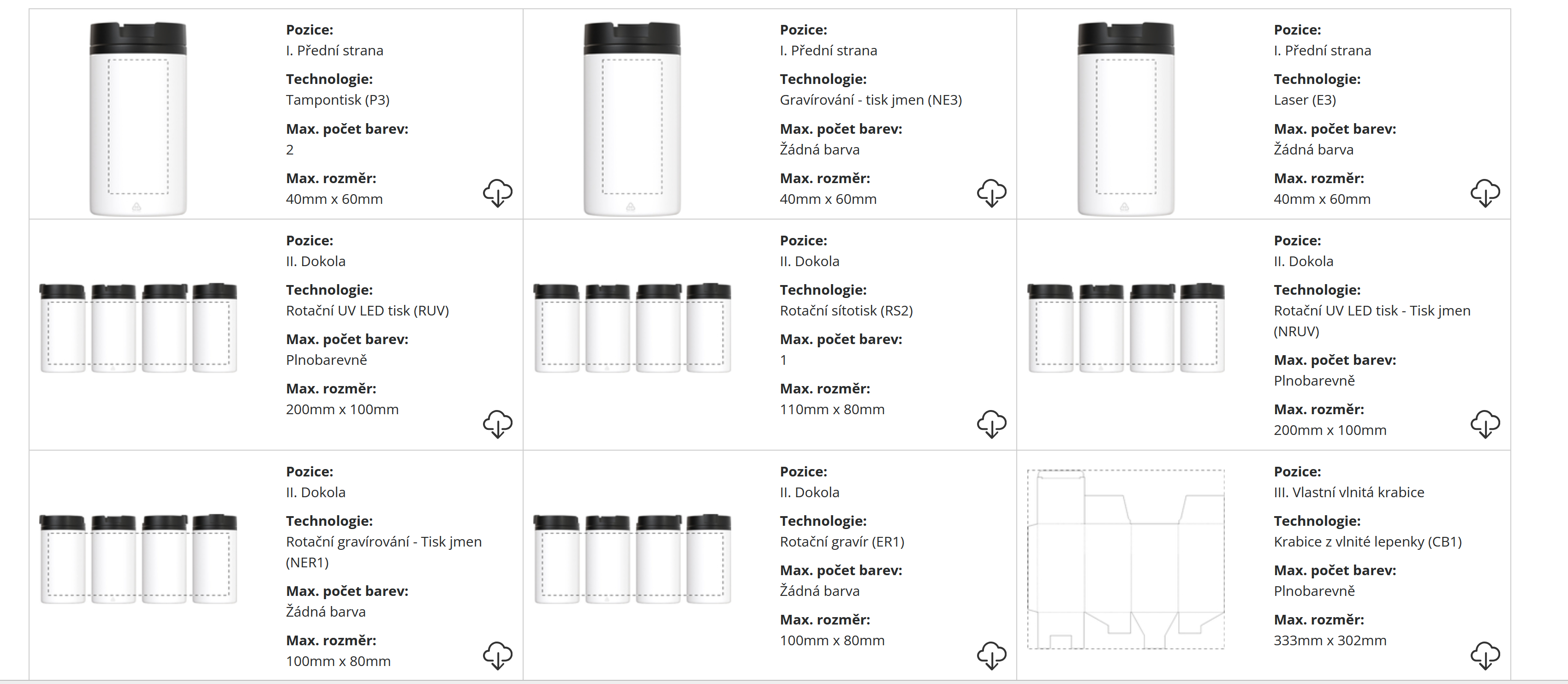 | ? Technologie potisku: | Laser/Rotační gravír/Tampontisk/ Rotační UV led tisk |