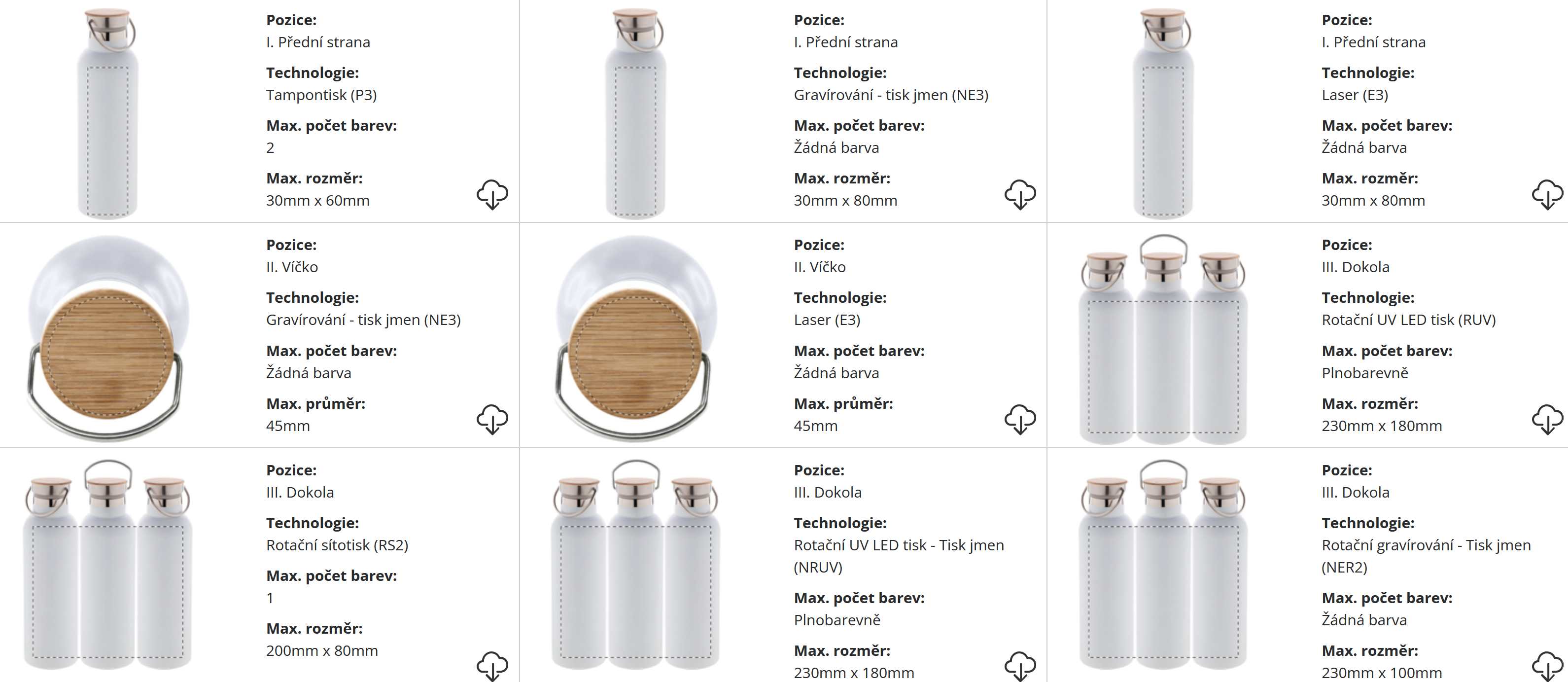 | Technologie potisku: | Laser/ Tampontisk/ Rotační gravír/ Rotační UV led tisk |