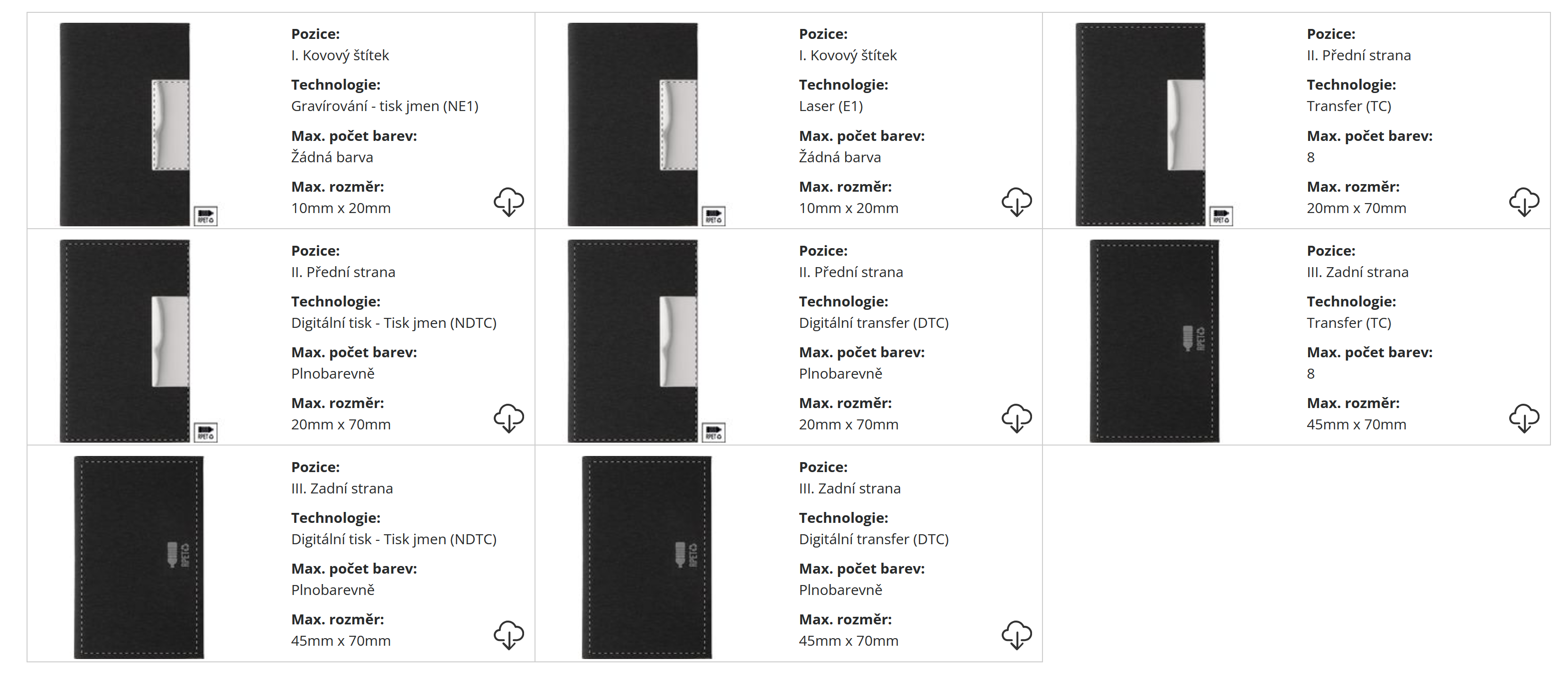 | ? Technologie potisku: | Sítotisk/Ražba/laser kov |