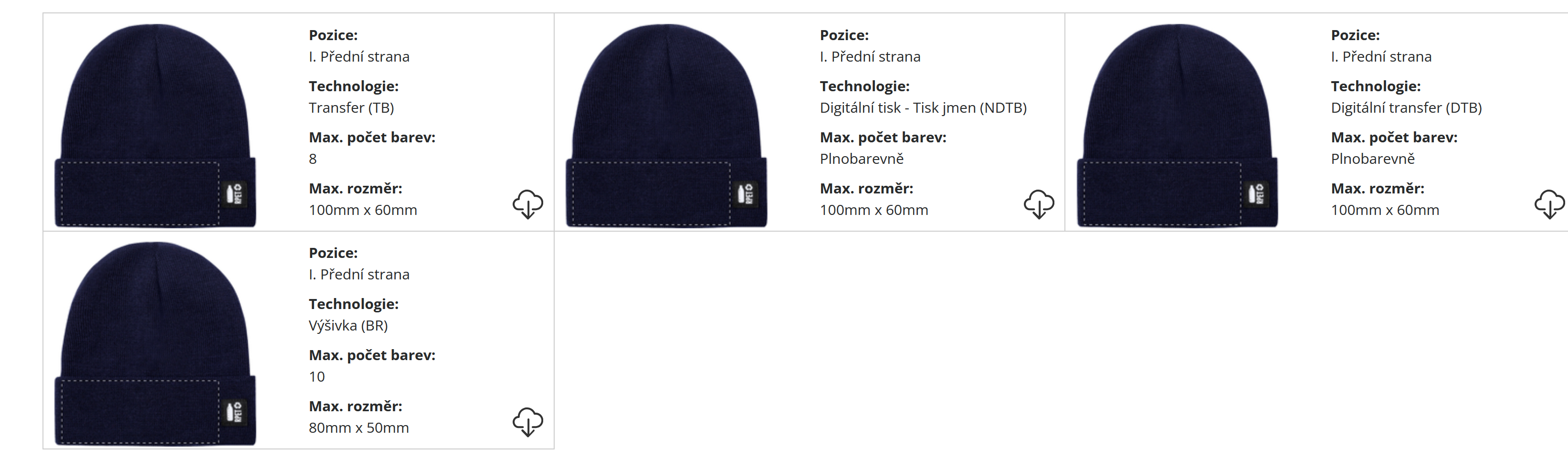 Logo na čepice lze vytisknout transfer tiskem nebo lze provést výšivka