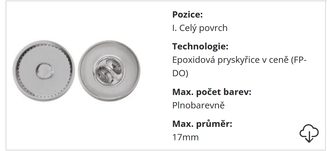 KOVOVÝ ODZNAK s potiskem obrázku, loga Rozměr ø20 mm