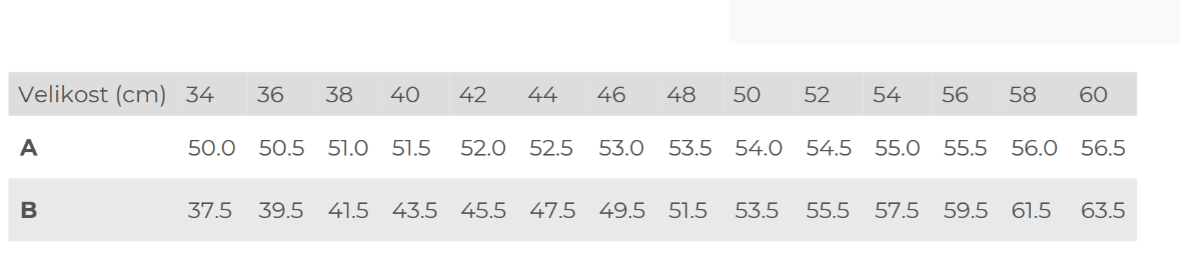 - Velikost 34, 36, 38, 40, 42, 44 ,46, 48, 50, 52, 54, 56, 58, 60