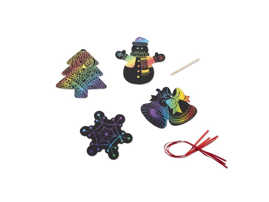 ŠKRÁBACÍ VÁNOČNÍ OZDOBY, 4 ks VYTVOŘTE SI ORIGINÁLNÍ DEKORACE ŠKRÁBACÍM PEREM