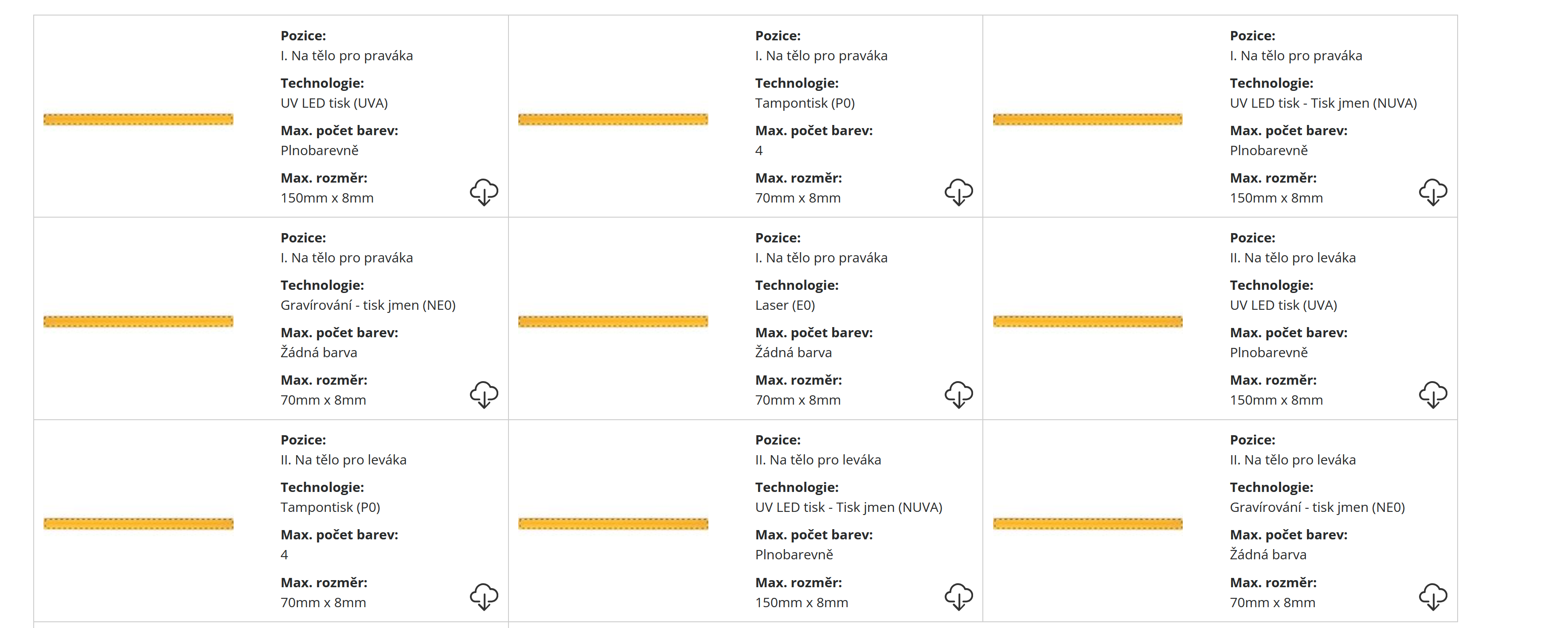 | Velikost potisku: | Dle dohody a zvolené technologie |
