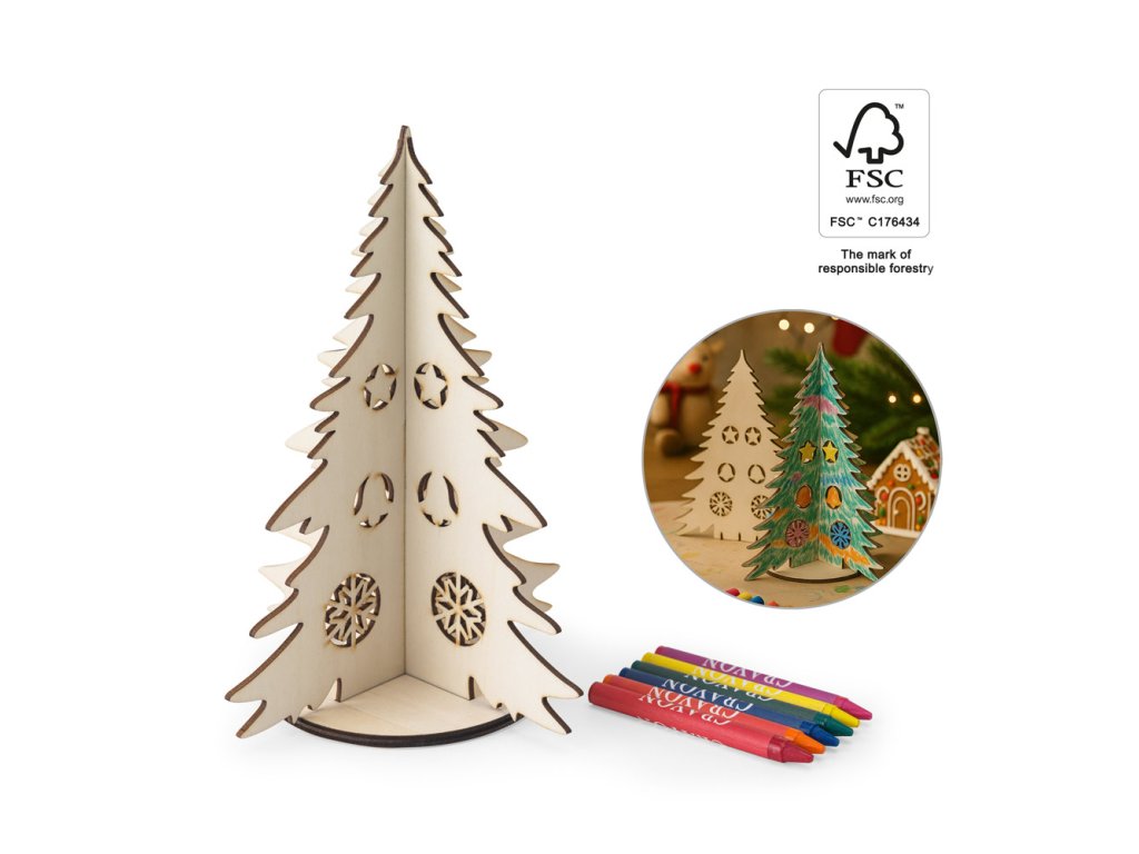 Vánoční skládačka, stromek, vyrobený z materiálu s certifikací FSC™ a dalších kontrolovaných materiálů. c, kterými si můžete stromek vybarvit a být kreativní podle svých představ. Dodáváno ve 100% recyklované obálce. Protože je výrobek vyroben z přírodních materiálů, barva a velikost výrobku a výsledek tisku se mohou u jednotlivých výrobků lišit. Montované: 162 X 162 X 200 mm | Obálka: 180 x 210 mm