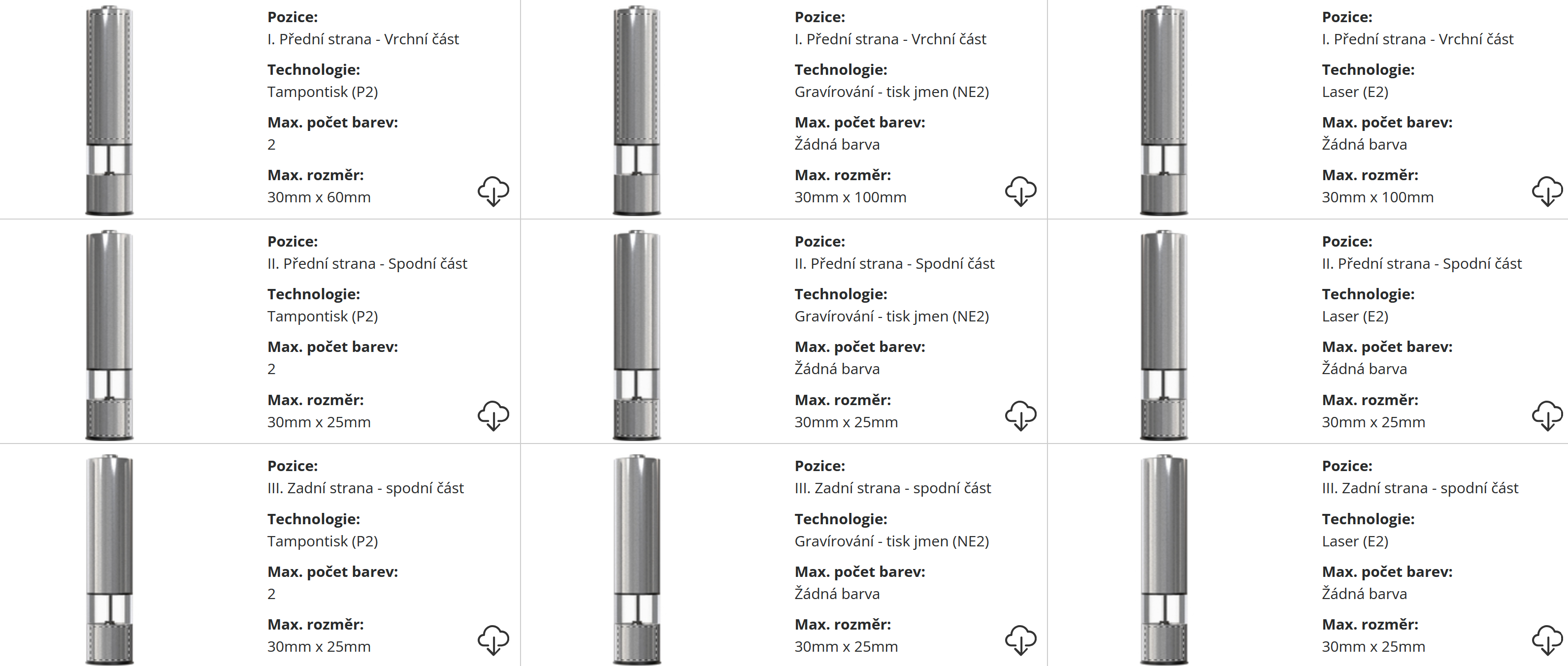 | ? Technologie potisku: | Tampontisk/Laser/Rotační gravír |