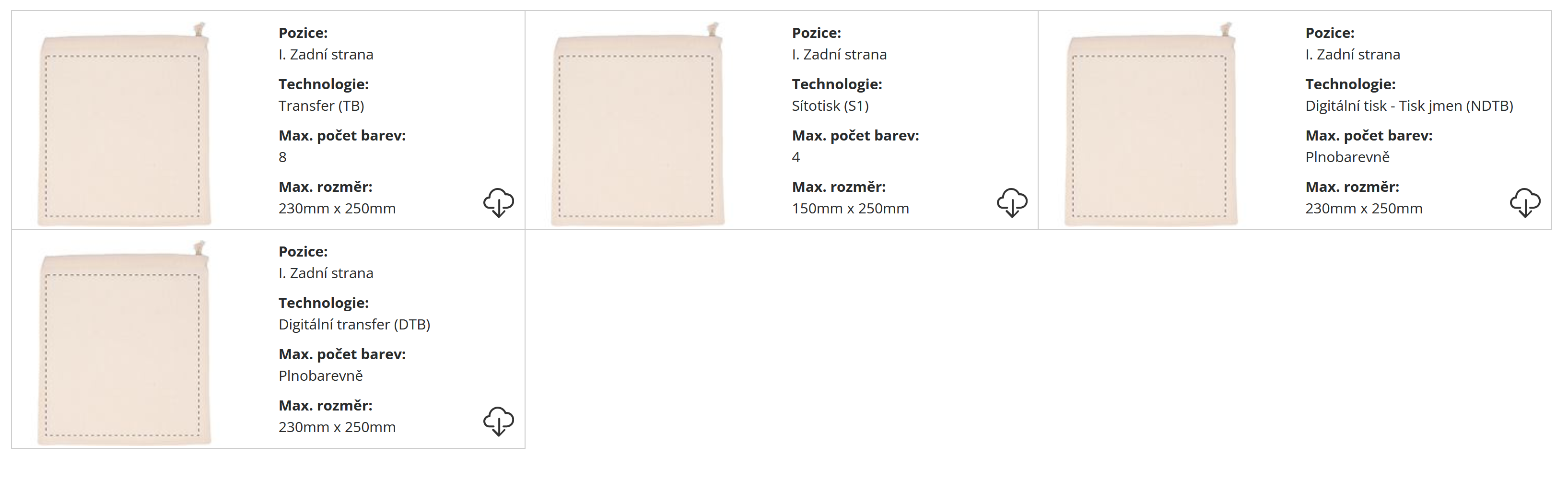 | Velikost potisku: | Dle dohody a zvolené technologie tisku |
