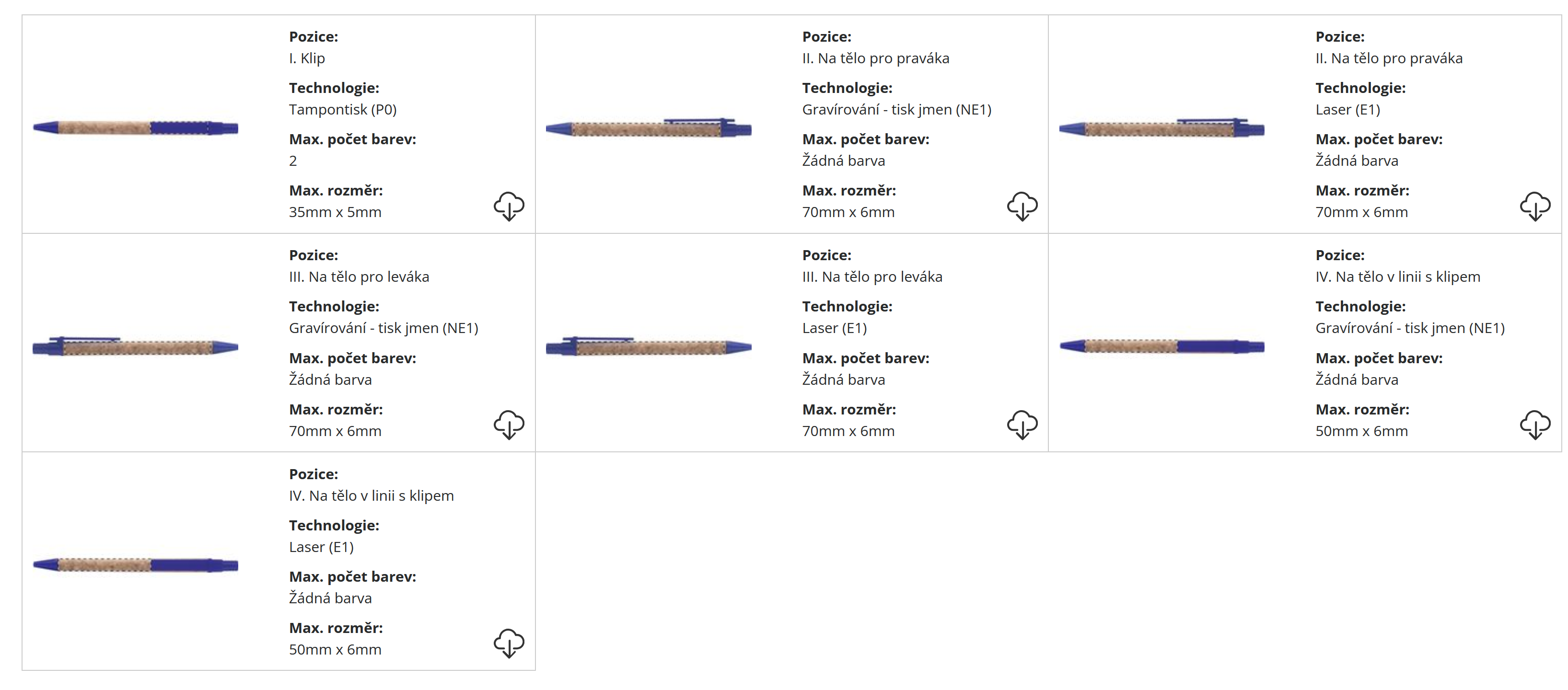 | Ostatní: | Kuličkové pero, rozměr náplně 1 mm, stiskací mechanismus |