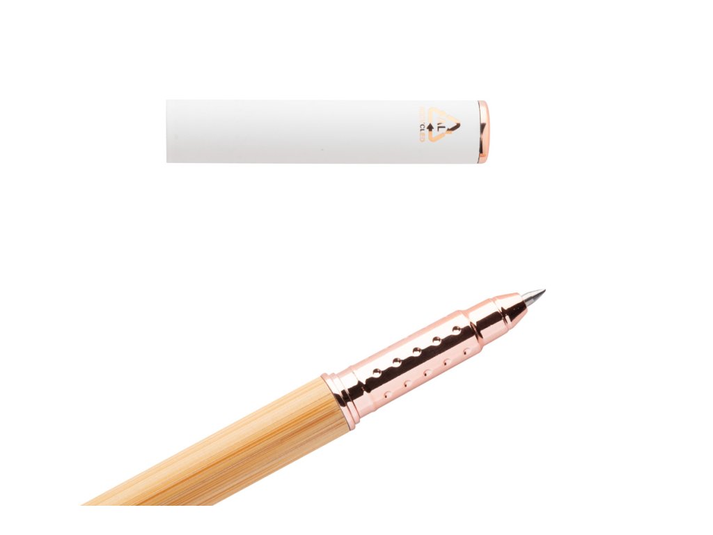 Kovový roller je vyroben z recyklovaného hliníku a má doplňky z růžového " zlata"