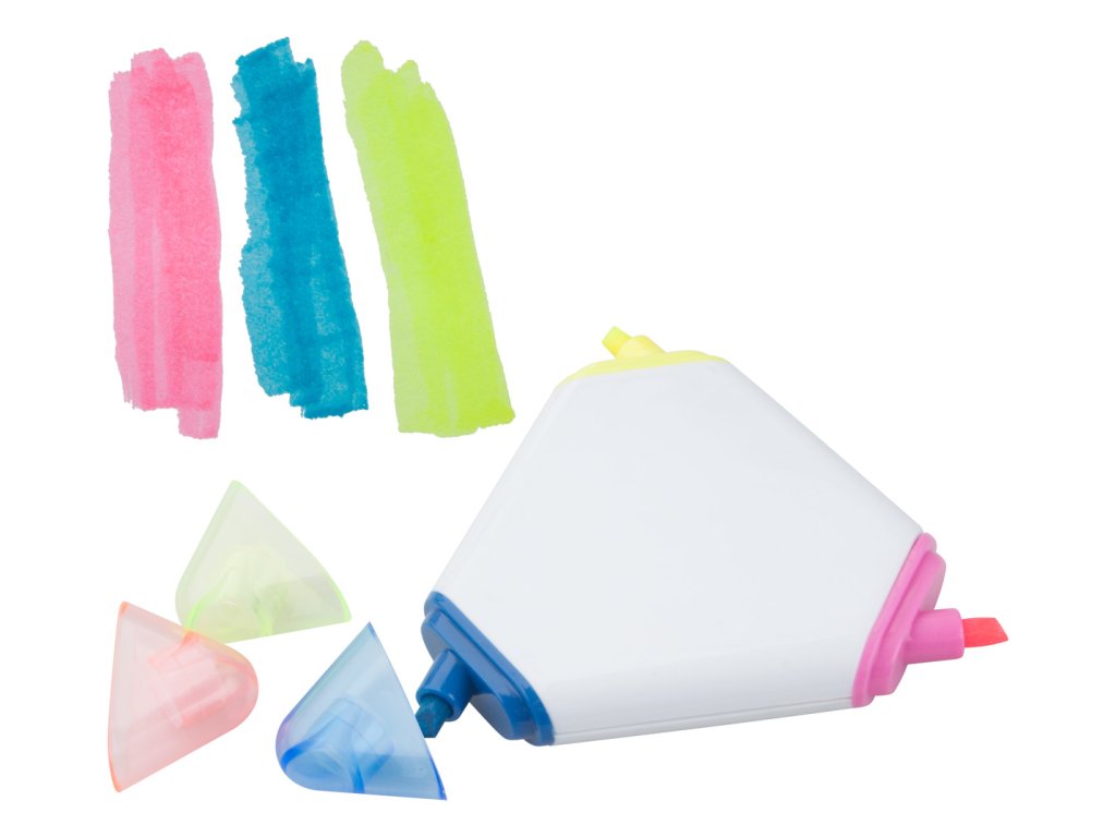Zvýrazňovače ve tvaru trojúhelníku s 3 různými barvami.