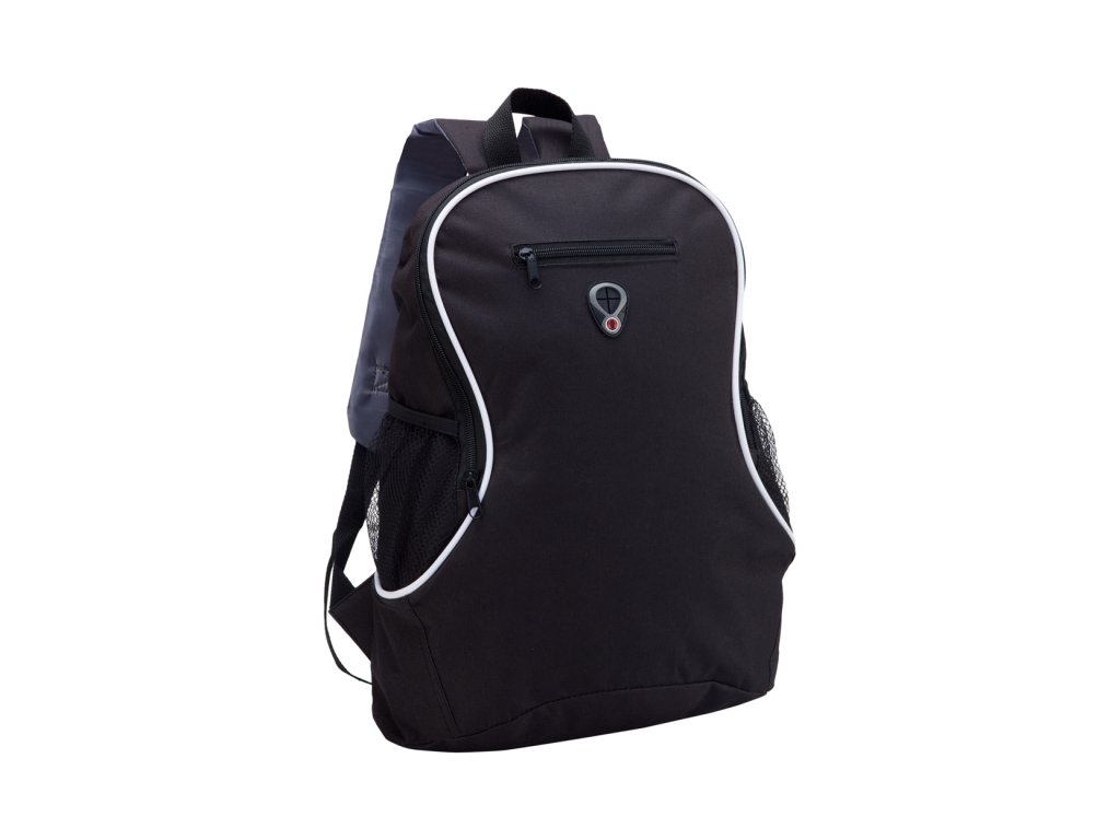 Polyesterový batoh, 1 hlavní a 1 doplňková kapsa.