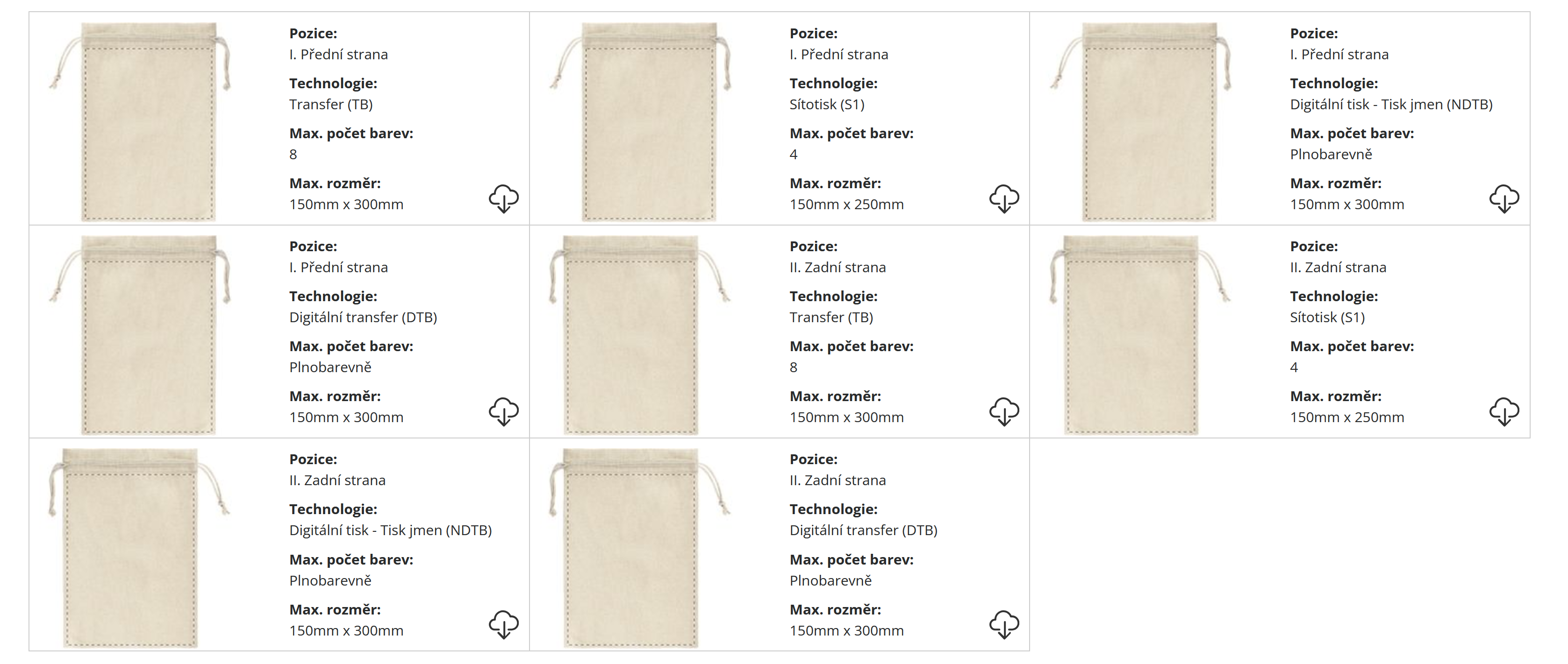 | Velikost potisku: | Dle dohody a zvolené technologie tisku |