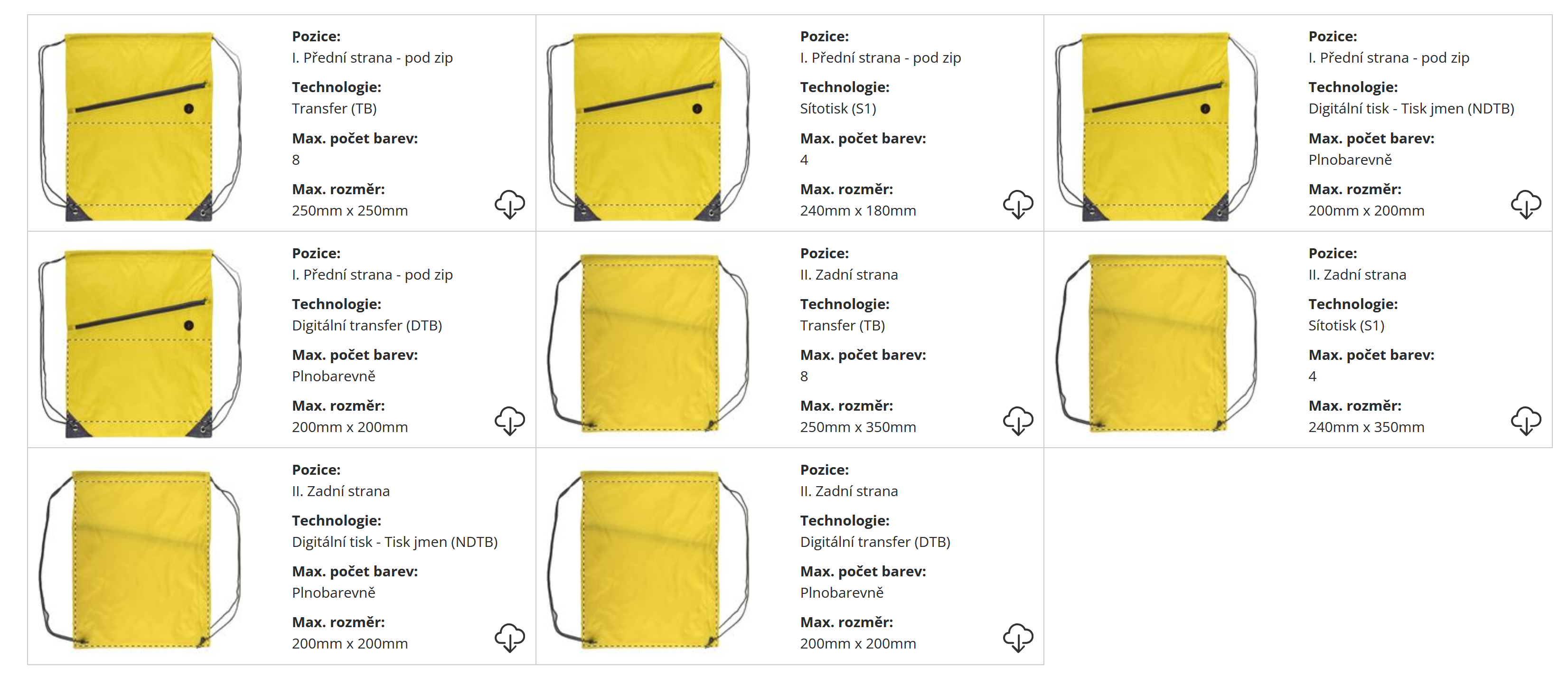 | Velikost potisku: | Dle dohody a zvolené technologie tisku |
