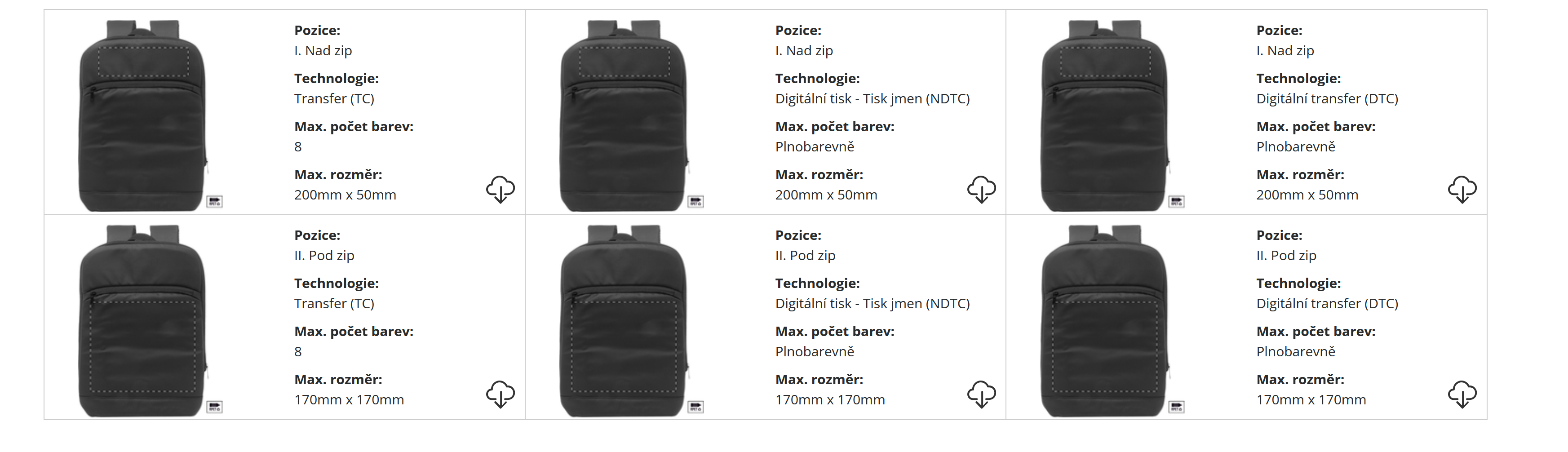 | Velikost potisku: | Dle dohody, umístění a zvolené technologie tisku |