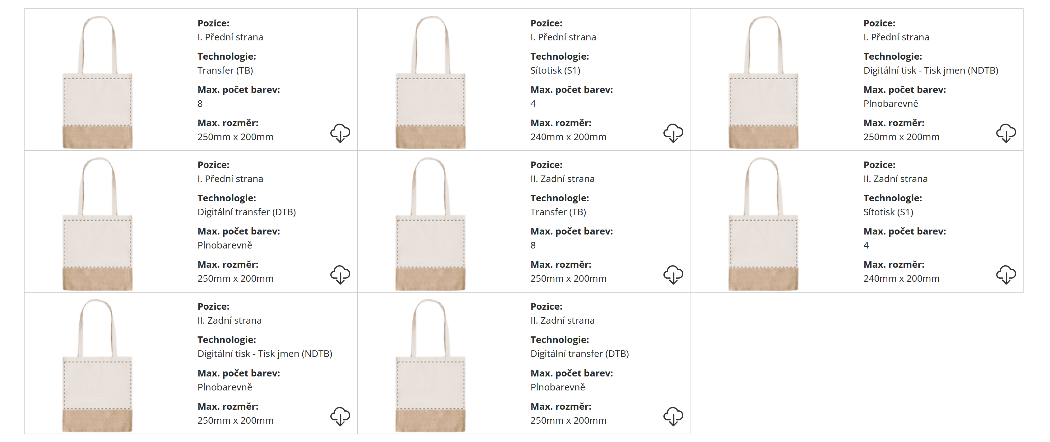 | Velikost potisku: | Dle dohody a zvolené technologie tisku |