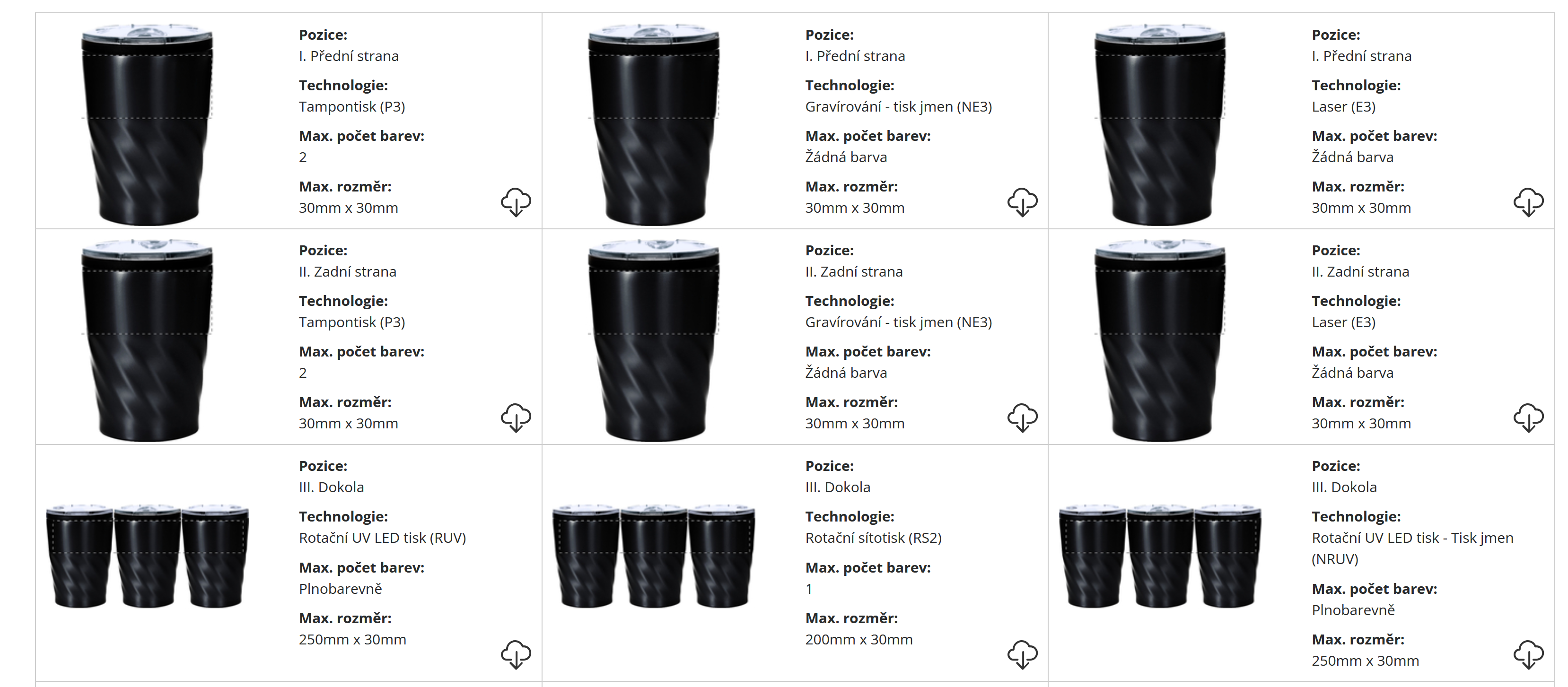 | ? Technologie potisku: | Tampontisk/Laser/ Rotační sítotisk/ Rotační gravír |