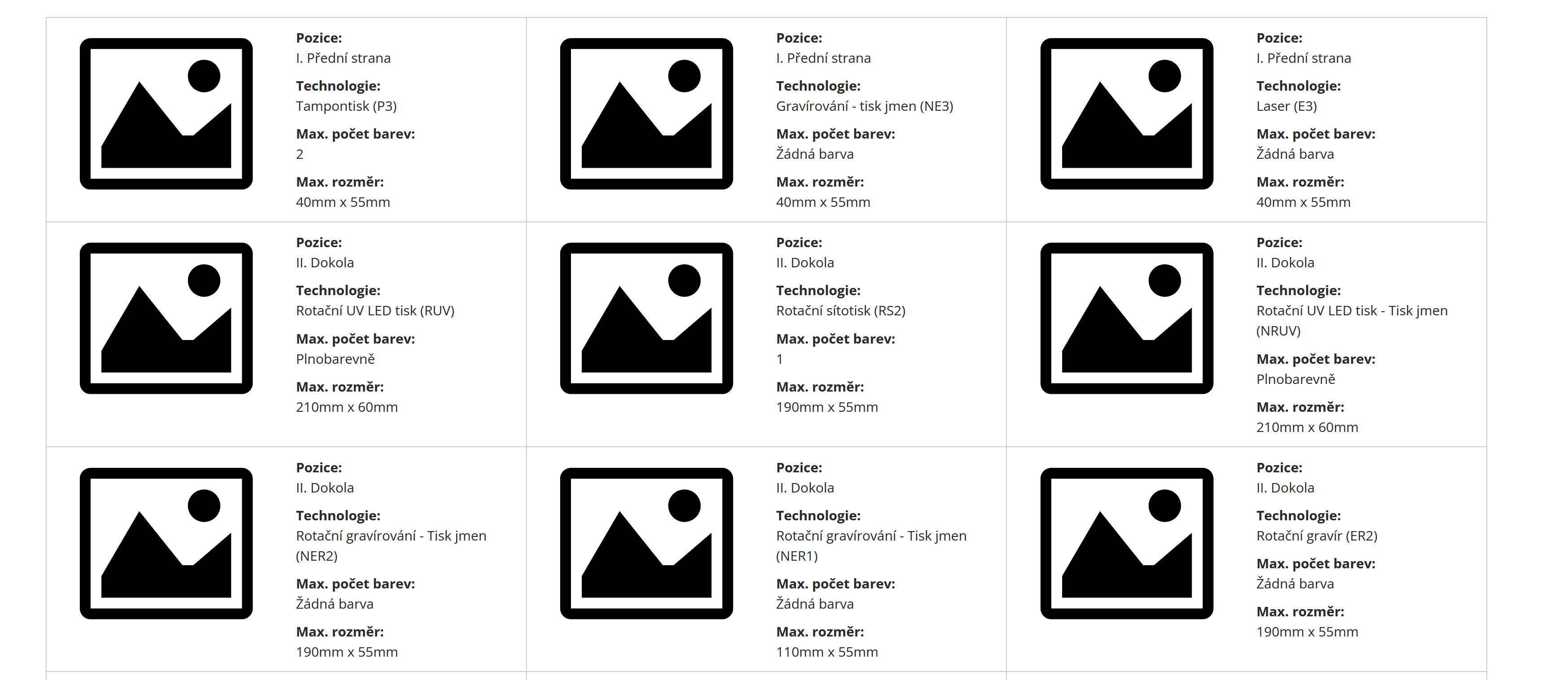 | ? Technologie potisku: | Tampontisk/ Laser/ Rotační UV led tisk |