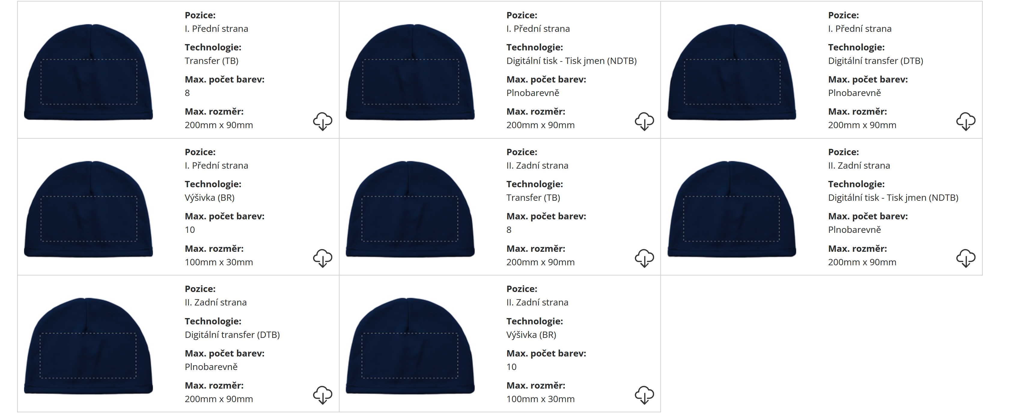 | Velikost potisku: | Dle dohody a zvolené technologie |