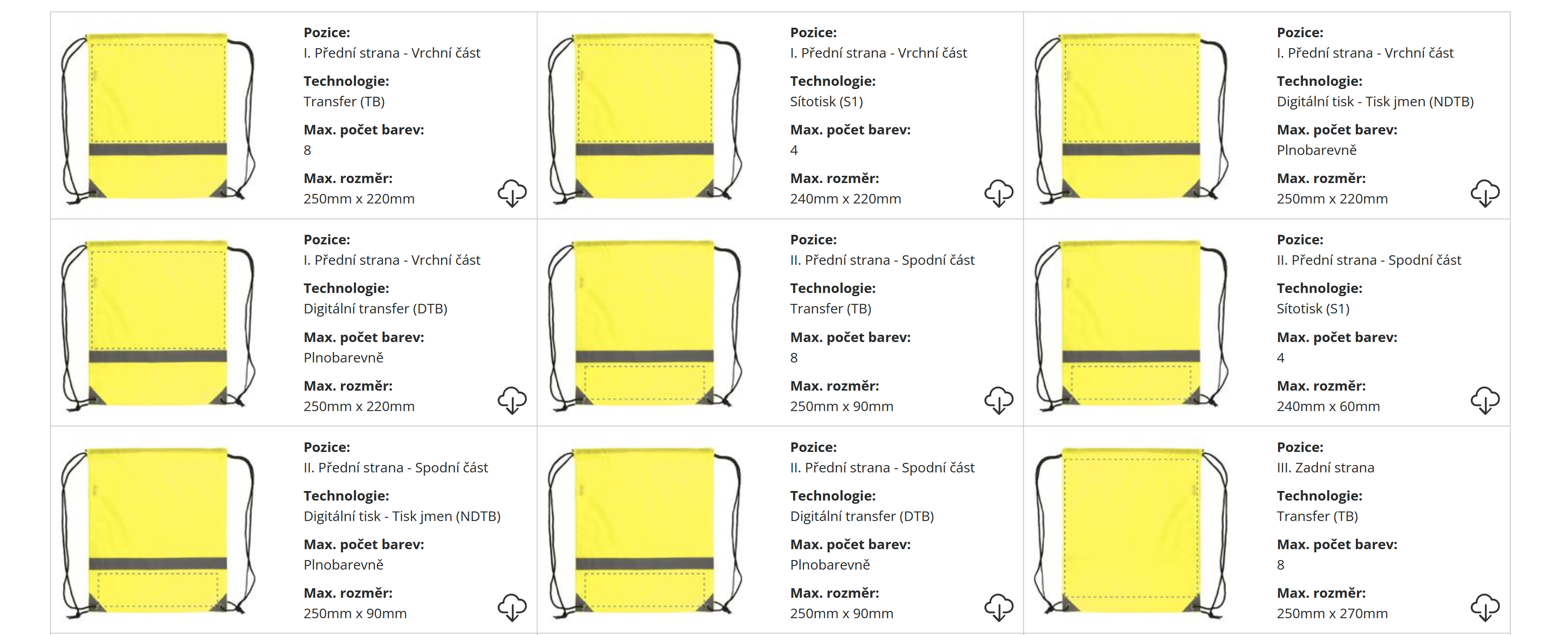 | ? Technologie potisku: | Dig. transfer/ Transfer/Sítotisk |
